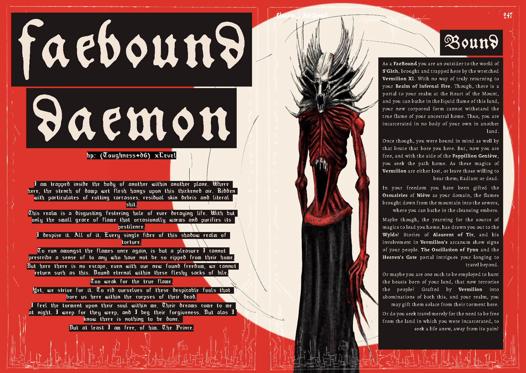 WraithBorn is a setting for Mörk Borg & OSR TTRPGs; Inspired by Folk Music, Ritual Magic, Grim Dark Fantasy and the Natural World around us. Set in the Veiled Realm of S’gàth, a shadowed echo of a medieval reality where the un-dead & the cursed reside beside the wretched & vile whom call this world home.