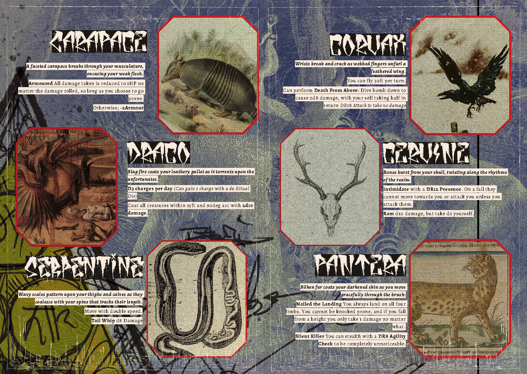- 30+ monsters from Vampiric Beasts to Rotlings of the Wilds; from Dragon & their Kin to Demons & their minions!